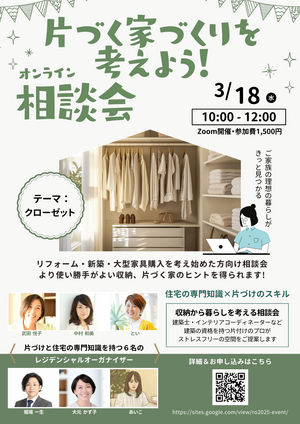 また実家での経験をもとに、家に合わせた暮らし方ではなく、人に合わせた家づくりができるよう、レジデンシャルオーガナイザーの資格を取得し、新築、リフォーム時、間取りや収納提案、インテリアのご提案。